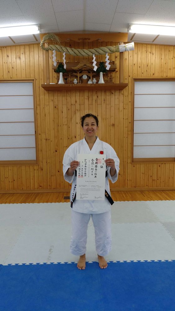 von ihr gewohnt sind, in Japan begonnen. Herzlichen Glückwunsch zum 3. Dan Nathalie!!! Mit ihrer Kata Nijushiho konnte sie die strenge Prüfungskommission der Japan Karate Association (JKA) im Honbu Dojo in Tokio überzeugen.