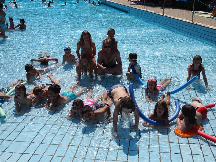 Der Mittwoch war mitunter der heißeste Tag der Woche und diesen nutzten wir mit einem Ausflug ins Germeringer Schwimmbad genau richtig. Nachdem wir mit dem Bus angekommen waren, ging es darum sich möglichst schnell umzuziehen und sich im kühlen Becken vor der Hitze zu retten. Neben einem Wellenbad galt es auch einen Sprungturm sowie die Rutsche zu erkunden. Es wurde fleißig getobt, gesonnt, gelacht und selbstverständlich wieder Eis gegessen. Während Hannah, eine hilfsbereite Mutter und Till wieder alle Hände voll damit zu tun hatten auf alle 19 Kinder gleichzeitig aufzupassen, schwammen, rutschten und sprangen diese um die Wette, wobei wieder zahlreiche tolle Schnapsschüsse entstanden. Gegen 16 Uhr gingen dann alle ein Stückchen brauner nach Hause.
